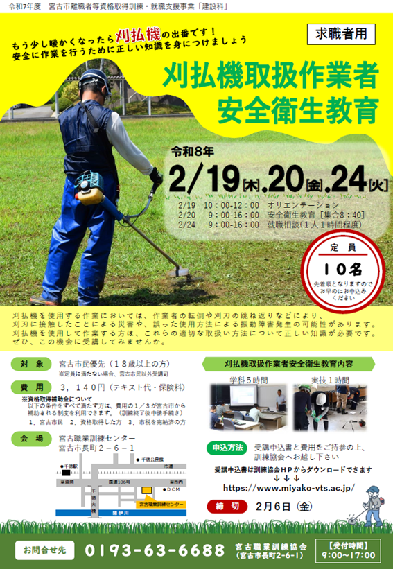 宮古職業訓練協会(宮古市長町2-6-1) TEL63-6688