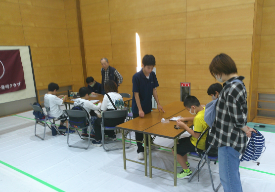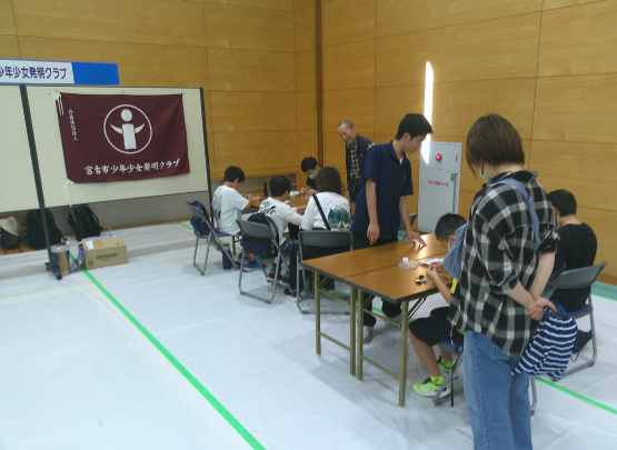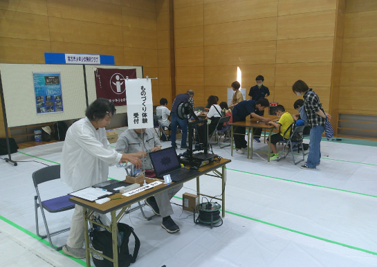 本日は、宮古市産業まつりの会場でモノづくり体験教室の中で宮古市少年少女発明クラブブースでの活動です。