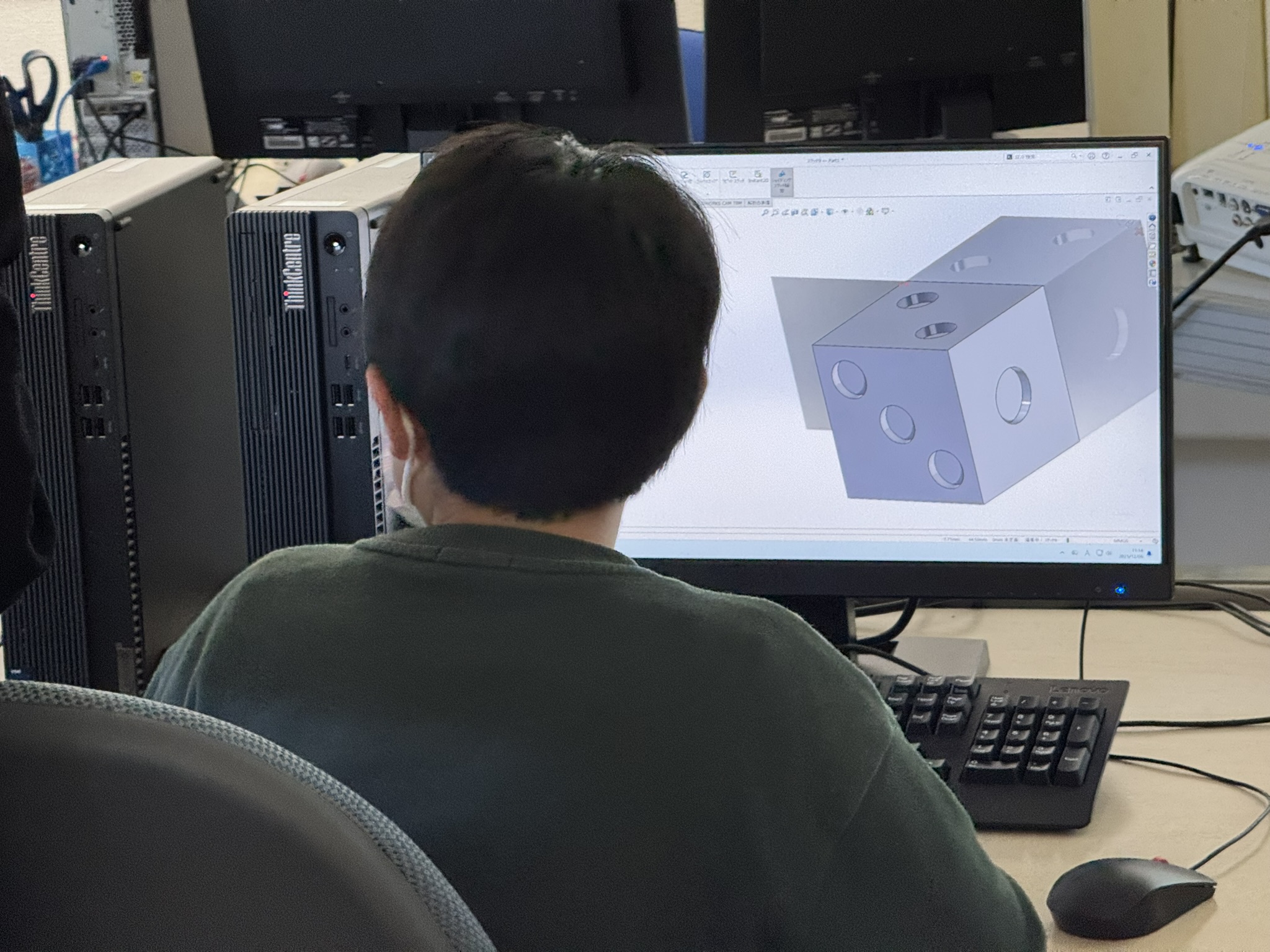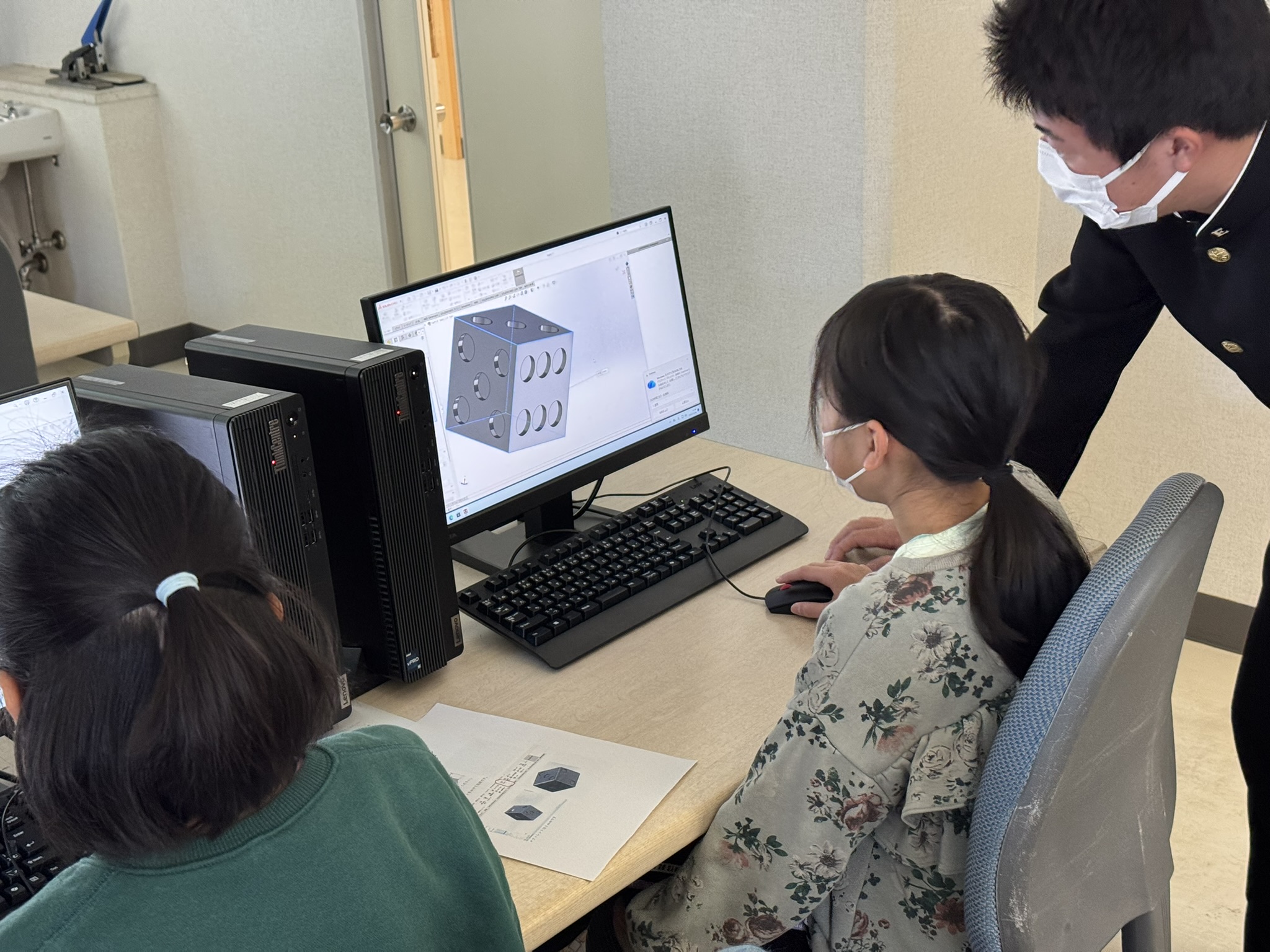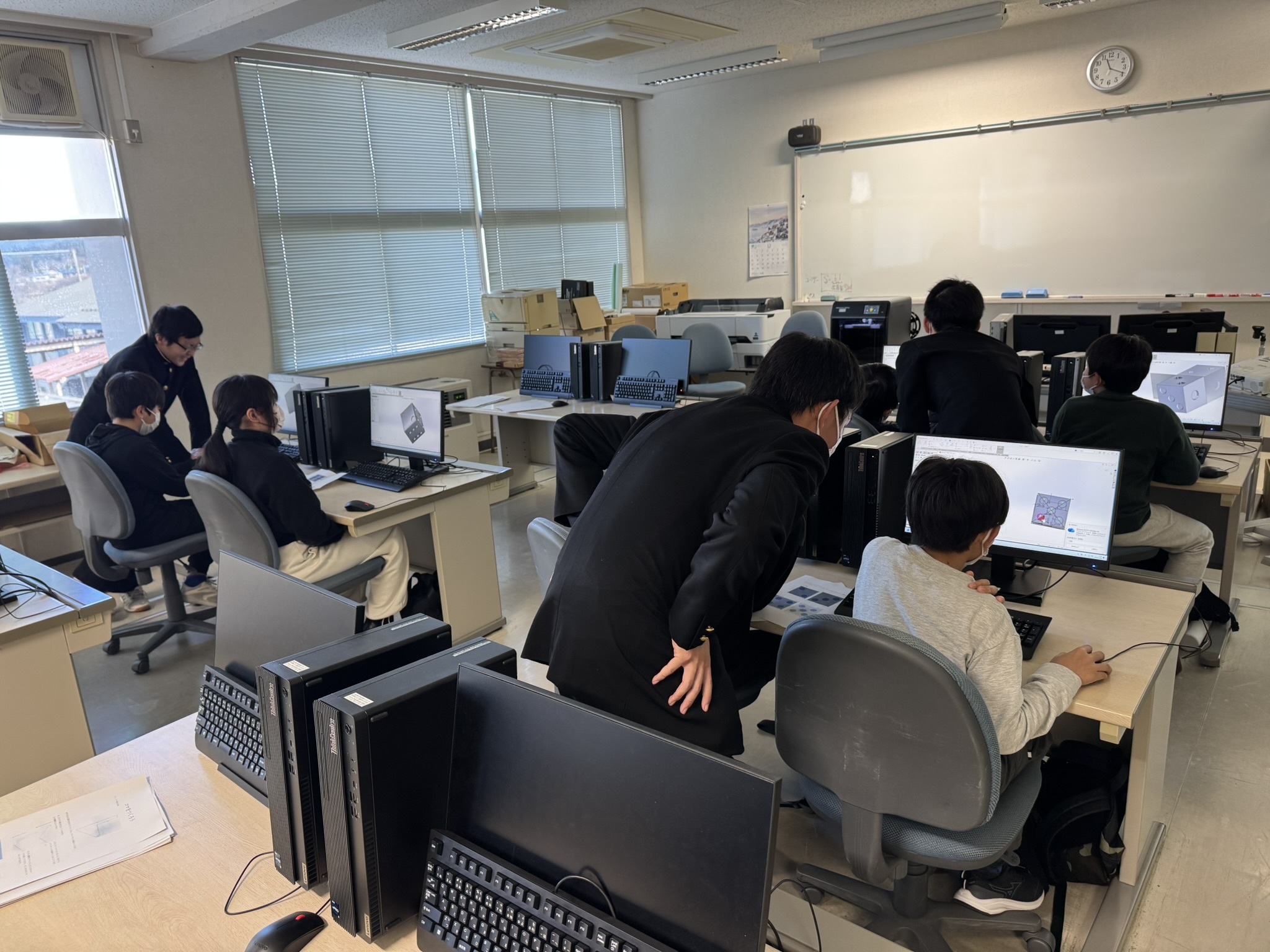宮古商工高校工作部のお兄さん達に3DーCADを教えてもらいました。